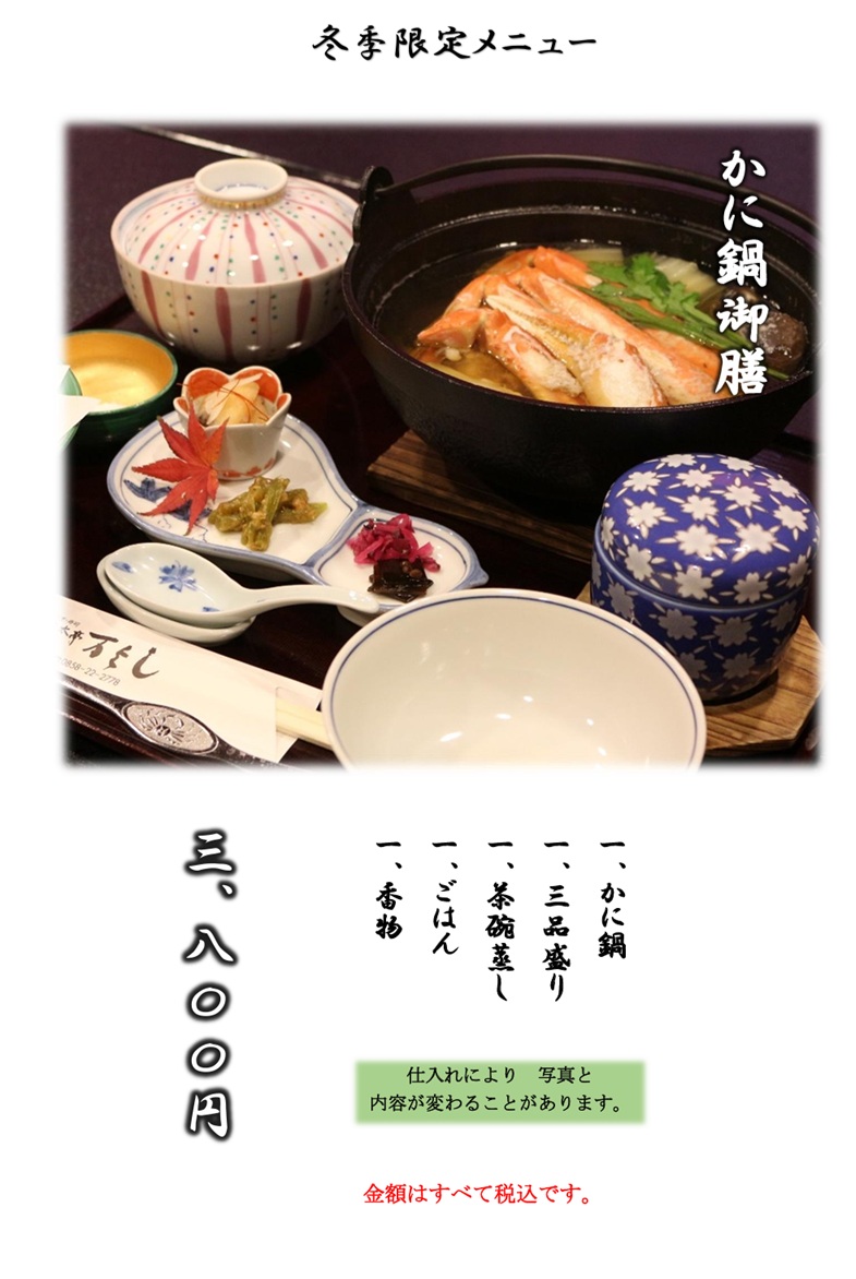 喜太亭定食や松華堂定食、旬の旨みがぎゅっと詰まった月替わり会席が人気メニューとなっております。「気軽に立寄ってほしい」と、50周年を機に定食も取り入れました。
